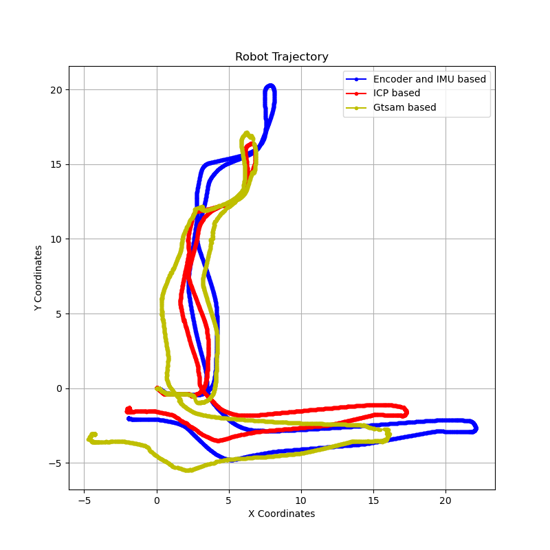 Through rigorous testing and validation, we ensured the reliability and accuracy of our SLAM system, making it suitable for real-world applications where precise localization and mapping are crucial. The incorporation of GTSAM optimization enhances the robustness and efficiency of our system, allowing for more accurate and reliable mapping and localization results.