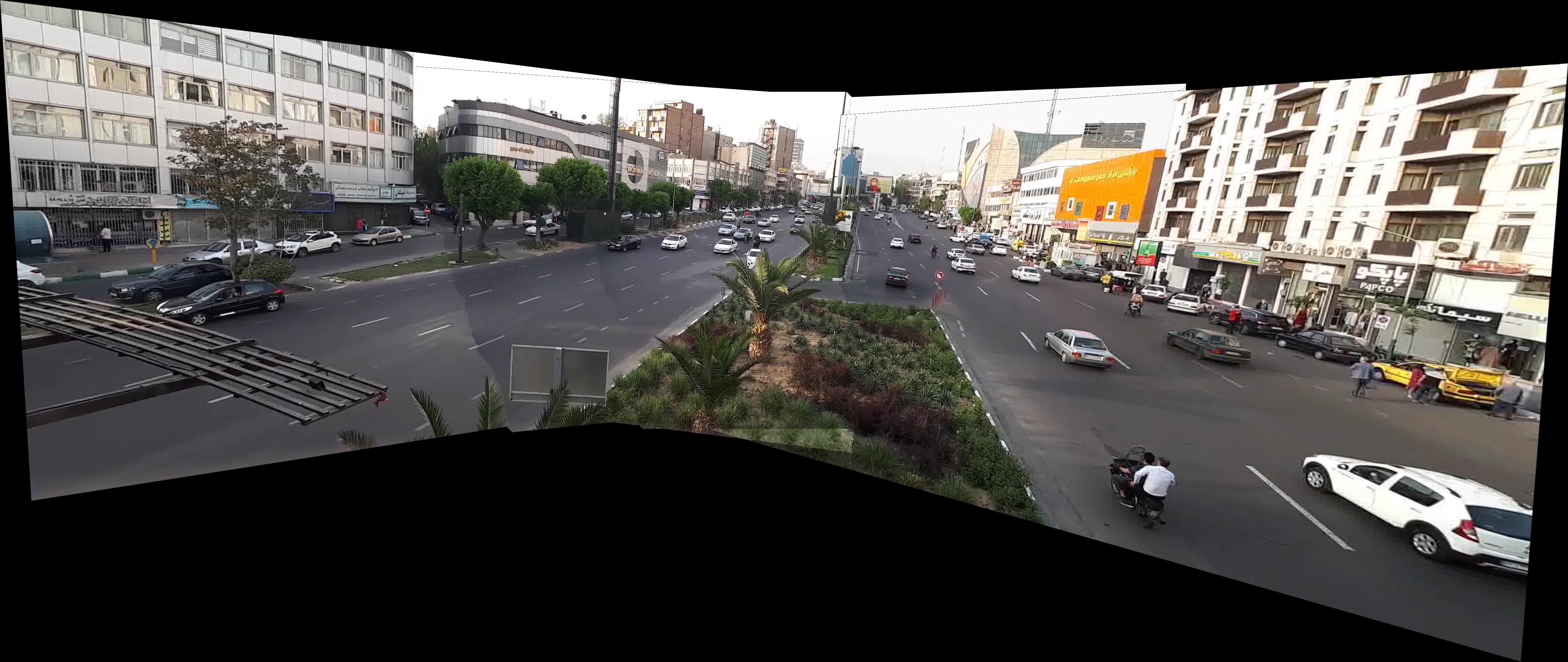 In this project, I gained hands-on experience in creating panoramas from video footage consisting of five keyframes. The provided video captures a bustling boulevard teeming with moving cars and pedestrians, while the camera undergoes a horizontal rotation.
